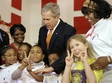 Here is President Bush trying to quell the insurgent uprising of some third graders.