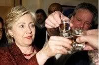 Here's Hillary last weekend hanging in western Pennsylvania, getting her drink on with "bitter working-class voters." I like how she's holding the shot glass. Her lips are full of anticipation and regret. It's a look of being thrust into the moment. Like, "Oh fuck, what kind of rot-gut is in this shot glass? Damn working-class voters! Can't even serve a fine elite Scotch. This is gonna be some nasty shit. Where's some sniper fire when you need it?"